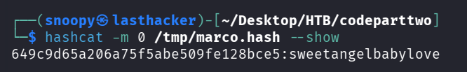 hashcat -m 0 -a 0 marco.hash /usr/share/wordlists/rockyou.txt --forcePrivilege Escalation