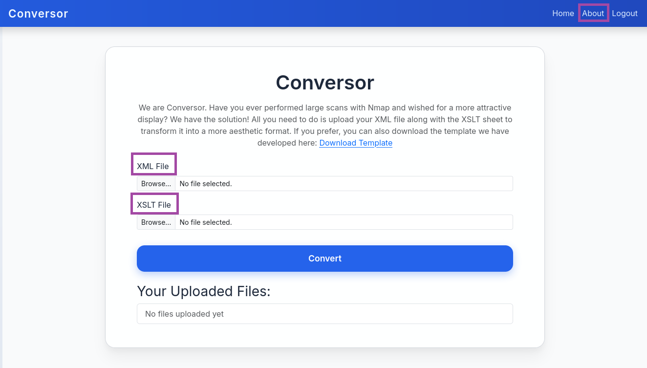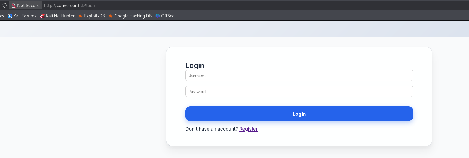 Open a browser and navigate to http://conversor.htb