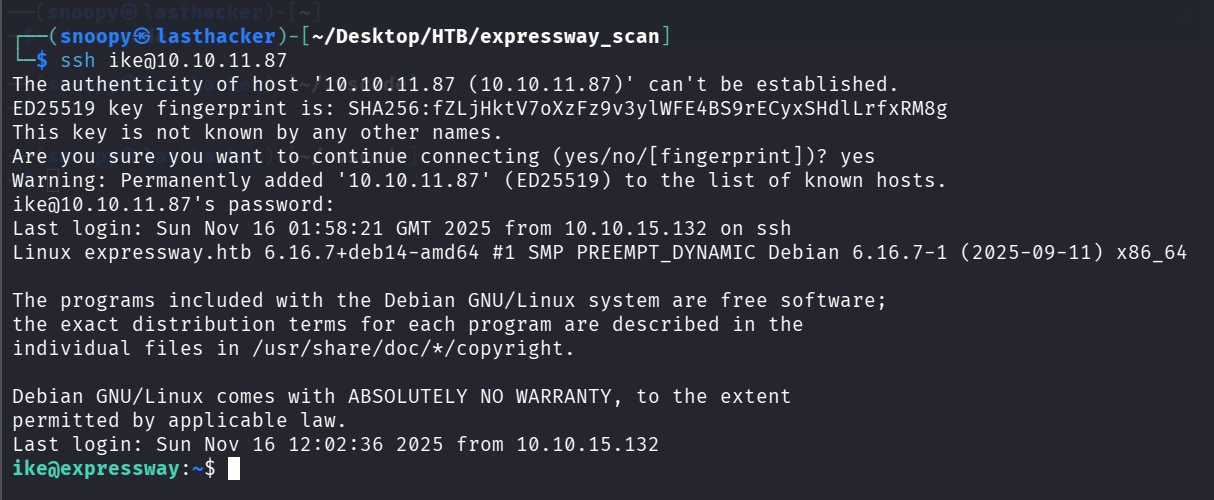 ssh ike@10.10.11.87
