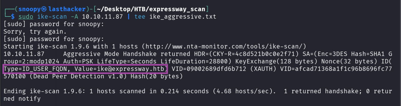 sudo ike-scan -A 10.10.11.87 | tee ike_aggressive.txtImportant finding